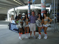 We attended the Houston Astros vs. Florida Marlins game on Sunday afternoon. This is the final year that the Marlins will play in this stadium. The Marlin fans and the Marlin's organization are very anxious for their new stadium to be built. There was a very small crowd, maybe only 2,000 people in attendance. We arrived at the stadium about an hour before game time. It cost $10 to park and our spot was literally just a few steps from the gates. There was a very festive atmosphere outside and throughout the concourses. The Marlins do a great job of keeping the few fans that are there entertained. We had our picture taken with the cheerleaders and the mascot Billy the Marlin.
